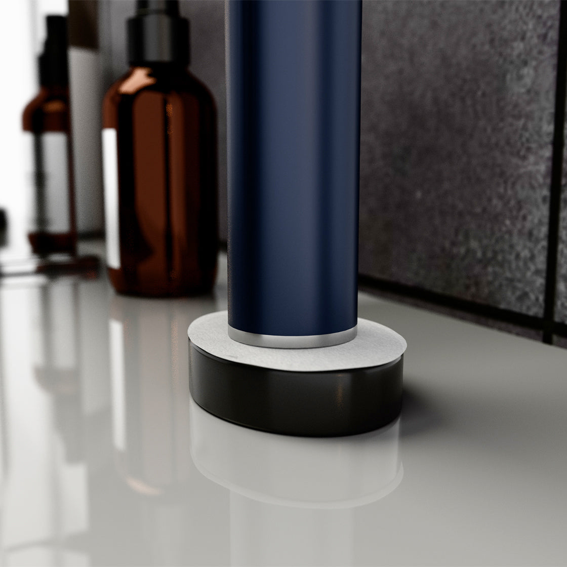 Tidy products use disposable shields, liners, and pouches made from a rigid, high-absorbency, quick-drying fiber material. They catch moisture, drips, and debris before they become a problem. Simply place a Dock Shield on your toothbrush dock, drop a Cup Liner into your toothbrush cup, or insert your brush into the Travel Pouch. No complicated steps, no messy cleanups β€” just replace regularly for a consistently clean and worry-free routine.